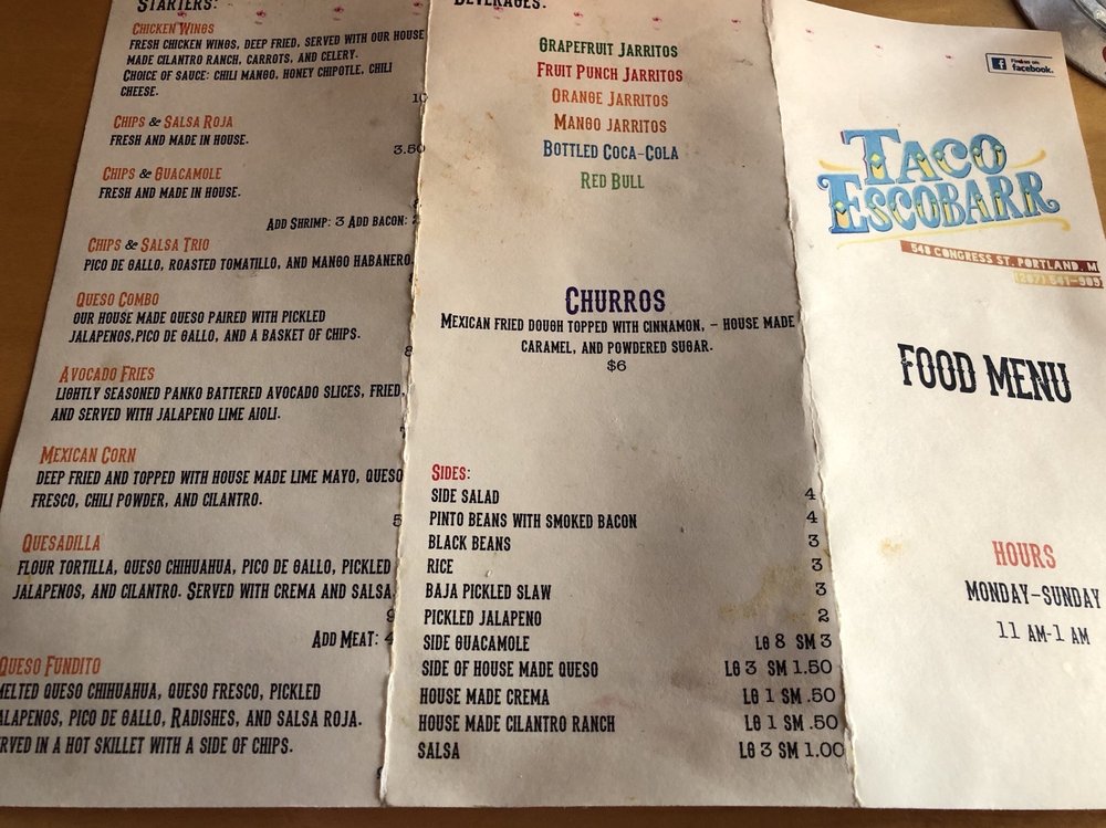 Taco Escobarr, located in Portland, ME, offers a vibrant dining experience with a variety of tacos, starters, and drinks. The menu boasts options like crispy tacos, puffy tacos, and burritos filled with flavorful ingredients like carne asada and guacamole. Customers rave about the fast and friendly service, strong margaritas, and mouthwatering enchiladas. The cozy interior features quirky decor, including iconic chili rainbow lights. While prices may be on the higher side, the quality of the food is praised by those who have visited. Whether you're looking for a casual lunch spot or a late-night meal, Taco Escobarr is a must-try for Mexican food enthusiasts.