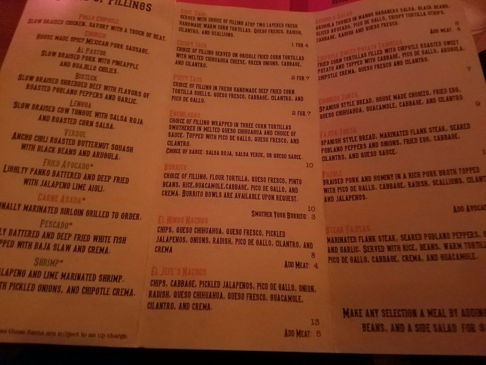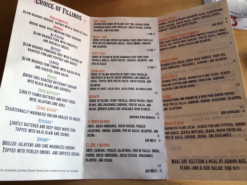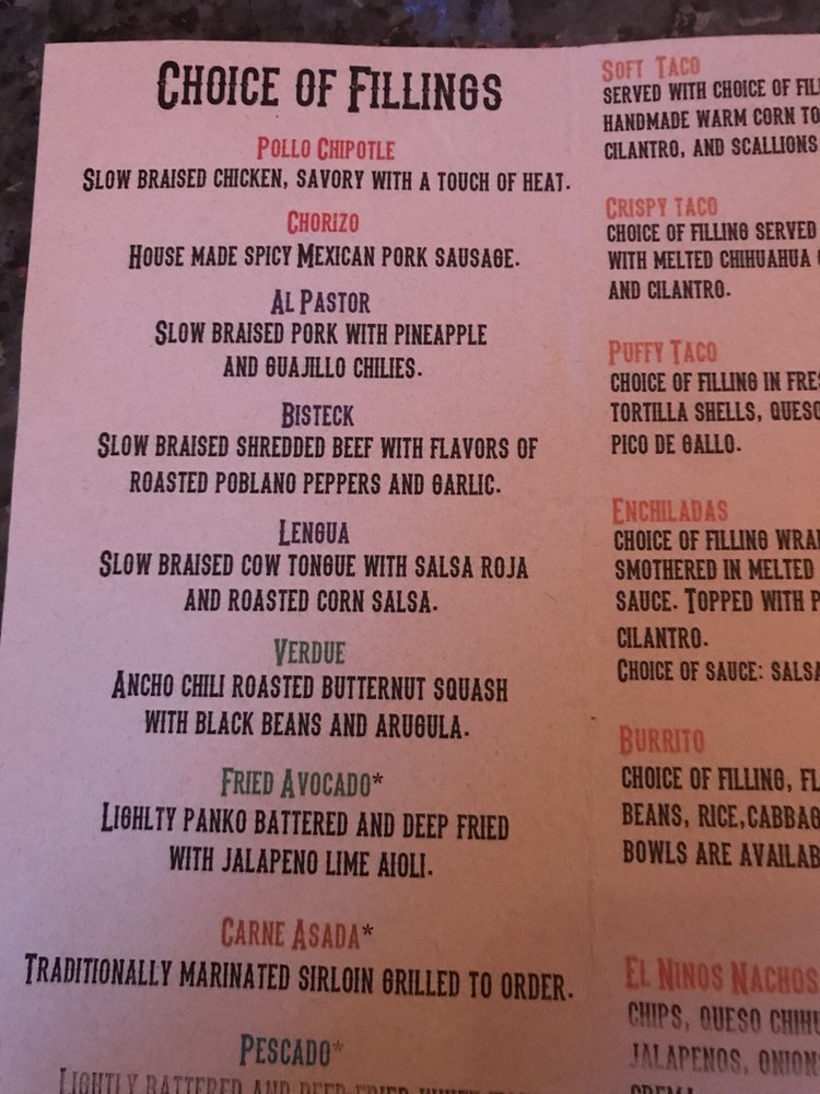 Served with choice of filling atop two layered fresh handmade warm corn tortillas. Queso fresco, cilantro, and scallions.