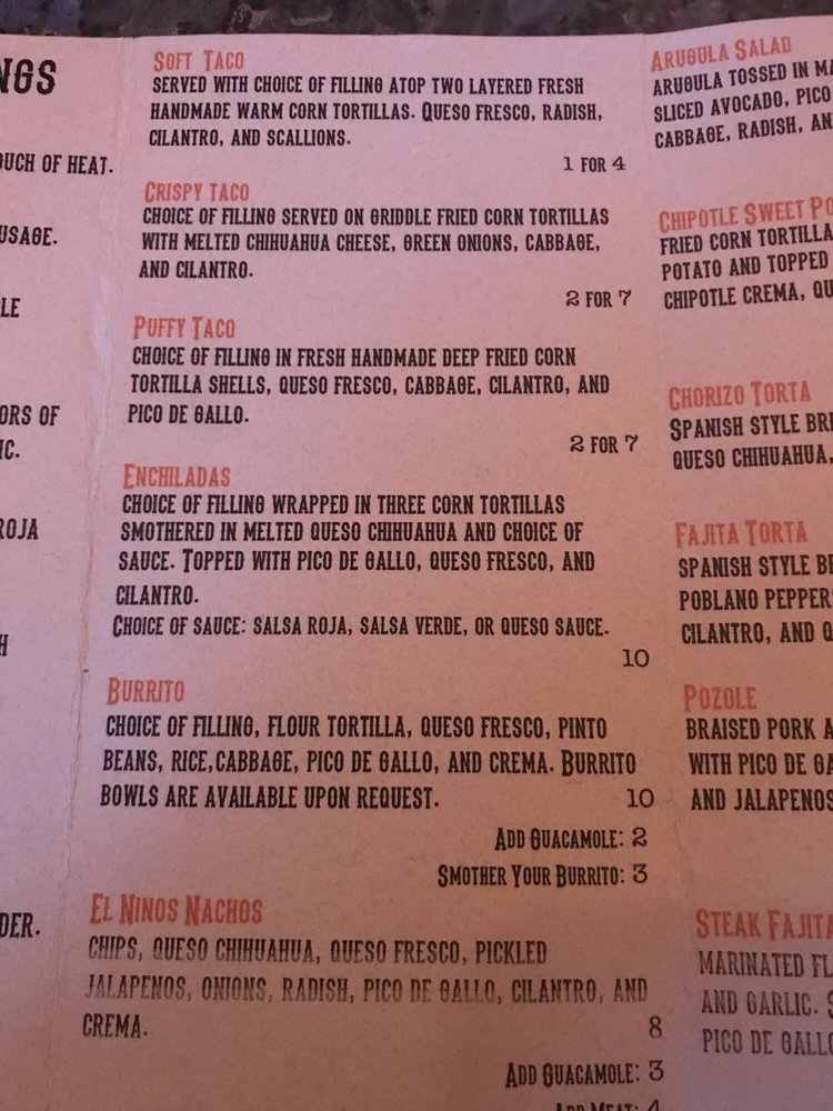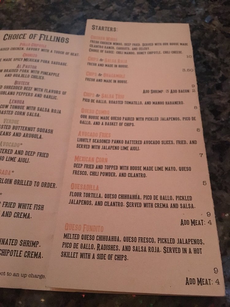 Choice of filling served on griddle fried corn tortillas with melted chihuahua cheese, green onions, cabbage, and cilantro.